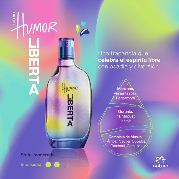 El primer perfume de Natura cosméticos que no tiene género. Amaderado frutal moderado. Copaíba, pimienta rosa y notas frutales, le dan a esta fragancia un toque único, libre, Presentación de 75 ml